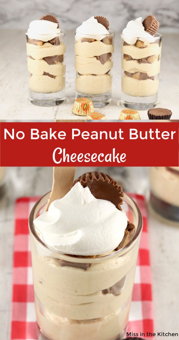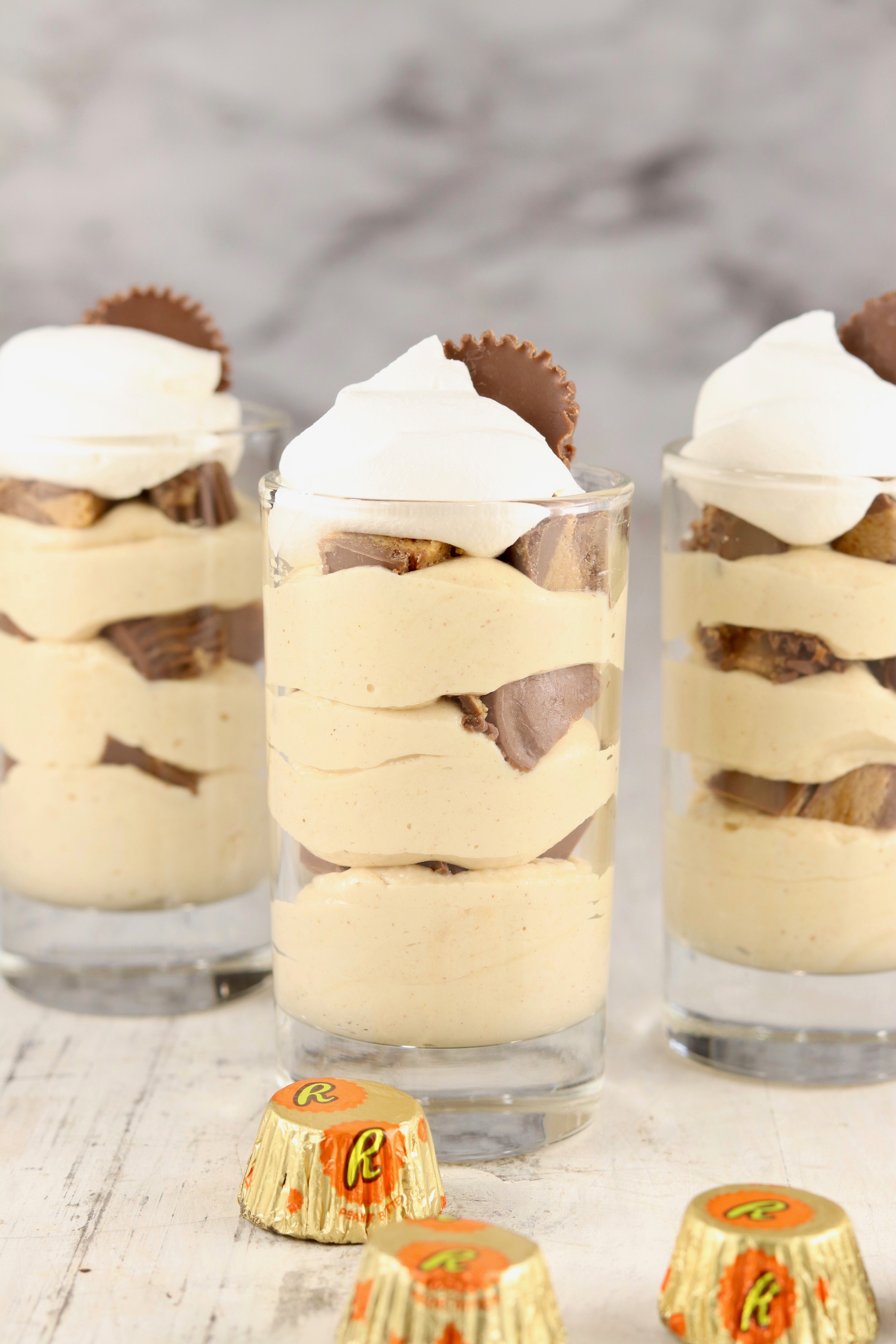 - Pipe or spoon cheesecake filling into individual glasses or bowls, layering with chopped peanut butter cups.