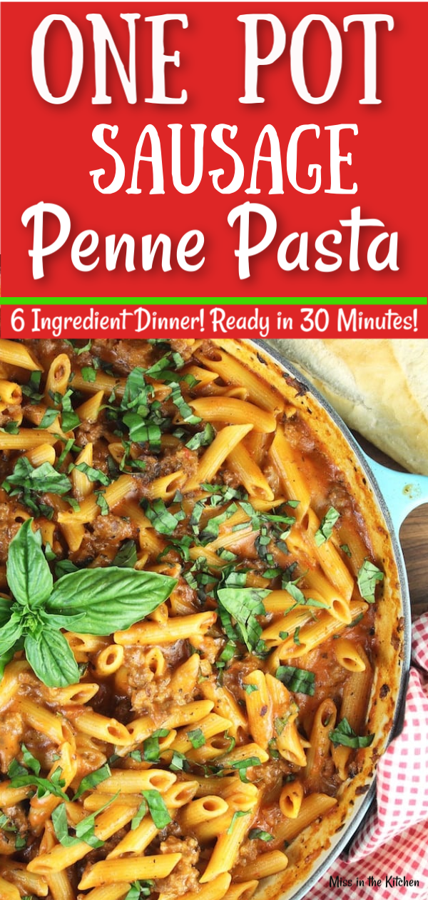 One Pot Sausage Penne Pasta is a filling and delicious dinner for busy weeknights. I love the easy cleanup and the entire family can agree on this pasta dinner!