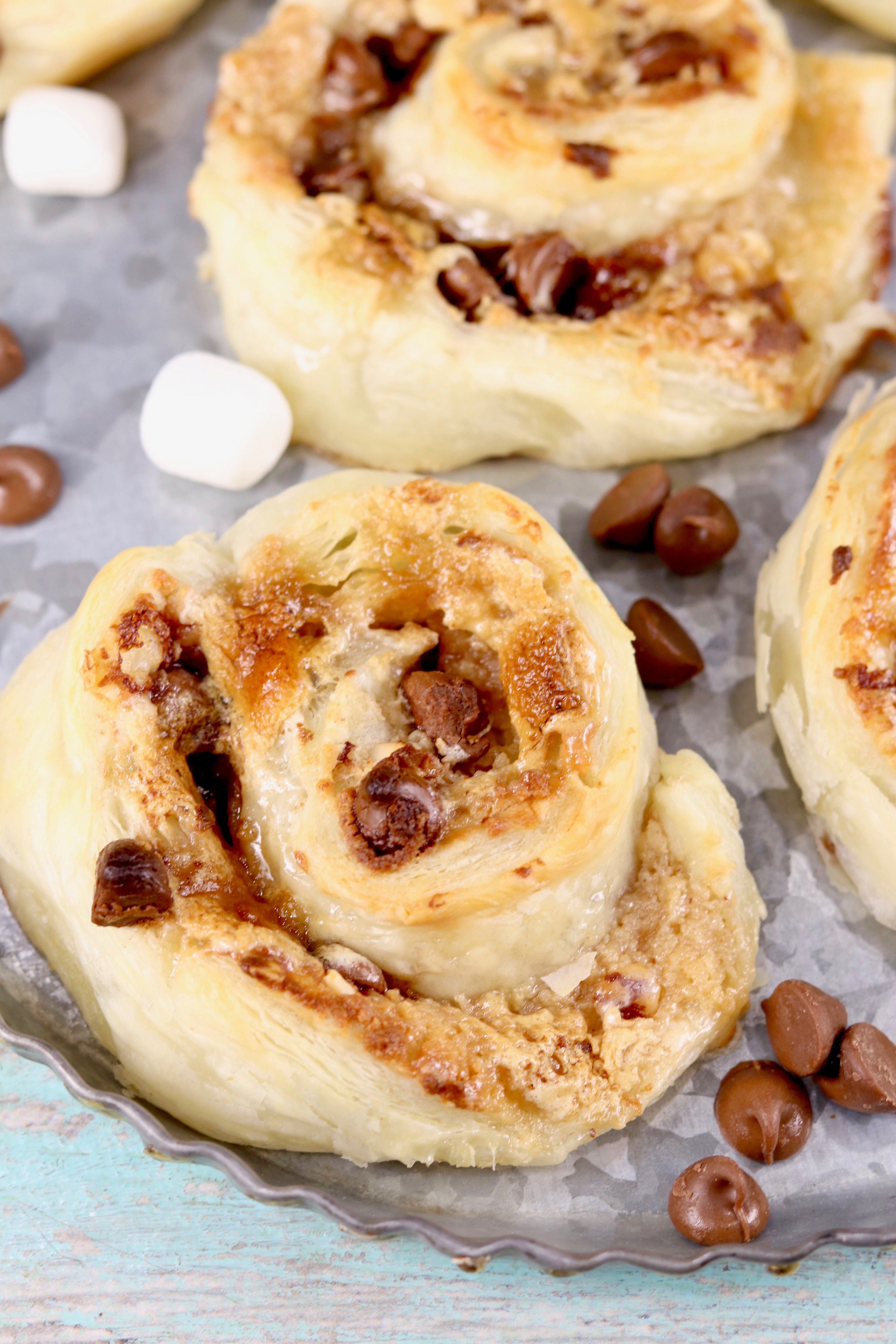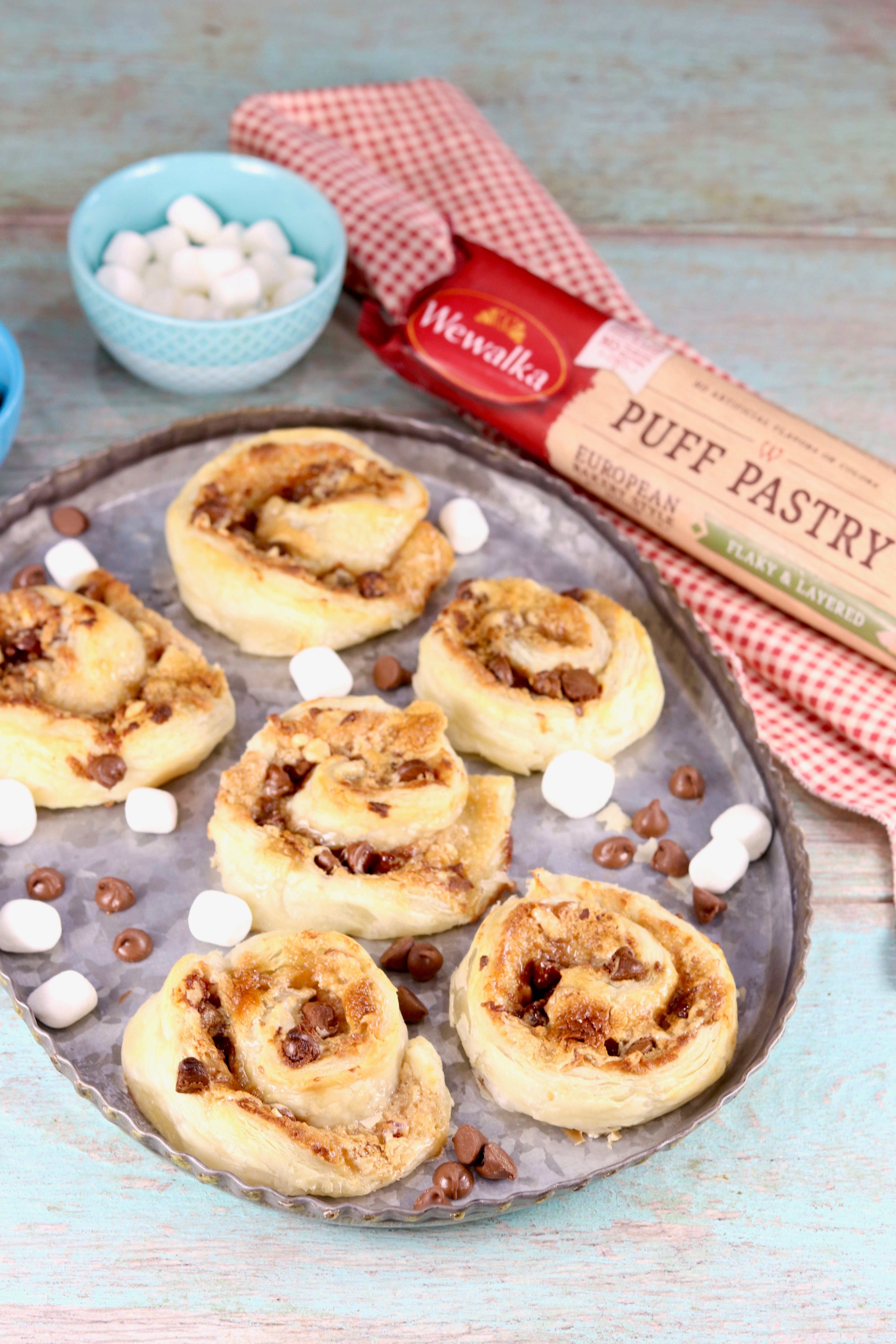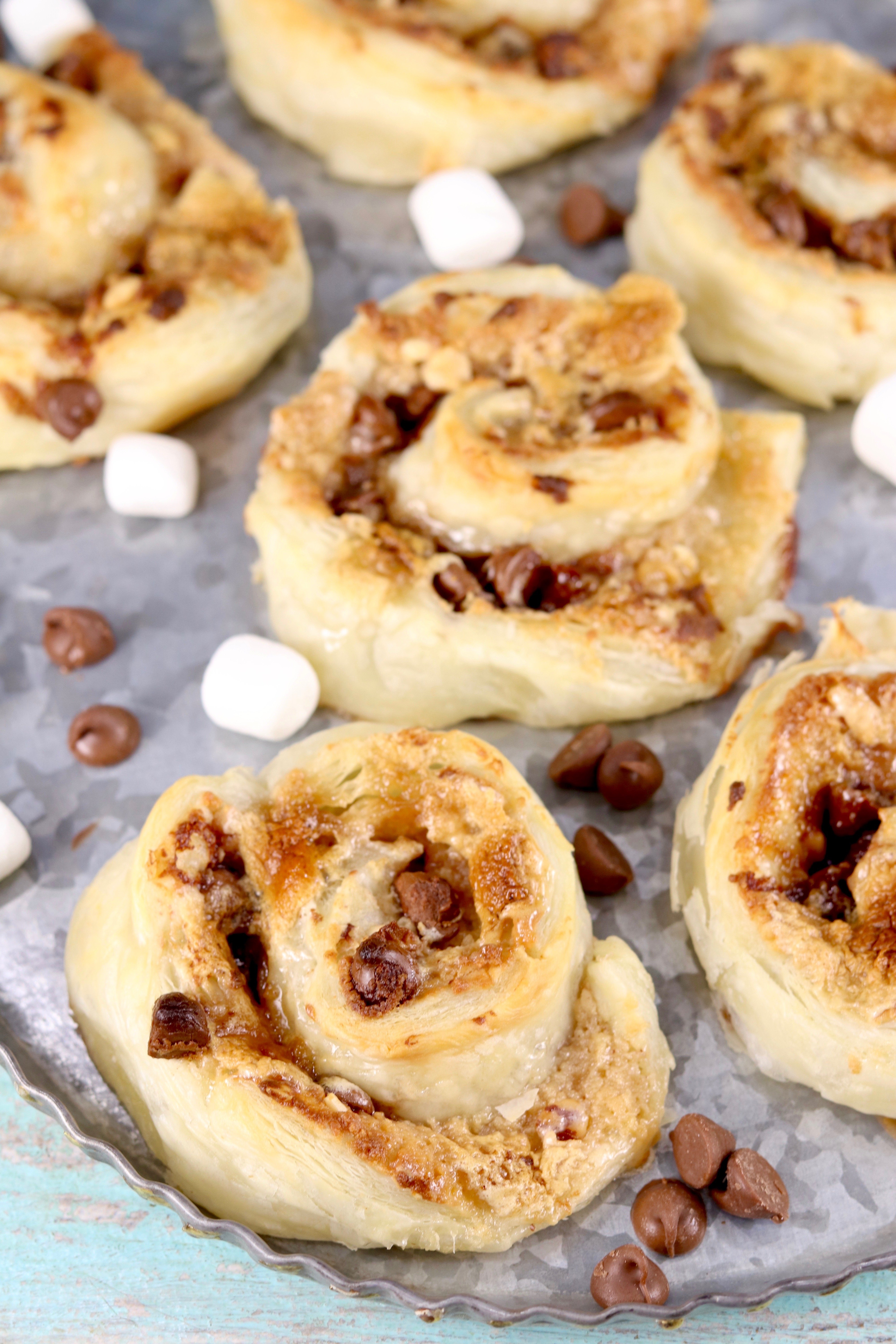 S’mores are the classic summertime treat and so irresistible. I took those classic flavors and made a batch of quick sweet rolls using refrigerated puff pastry dough. You are going to love how easy this recipe comes together!