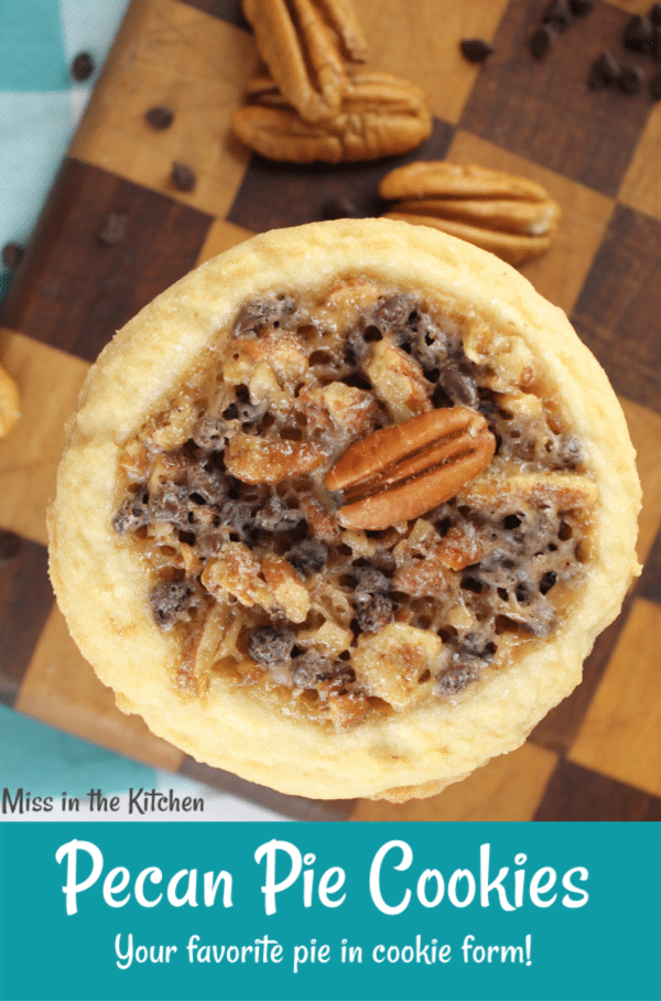 This Pecan Pie Cookies recipe is so simple and the perfect dessert for any occasion. A sugar cookie base filled with a gooey filling of crunchy pecans and mini chocolate chips is sure to be a new favorite with the pecan pie lovers!