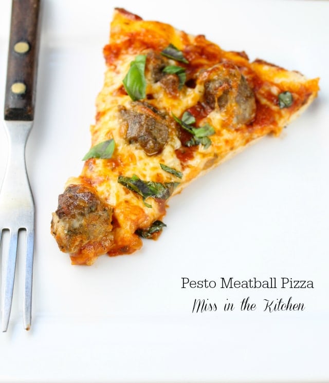 I went out to the garden to water this evening and I think my basil plant is ready for another trimming and that means another batch of pesto. My new favorite pesto dish has to be these Pesto Meatballs, especially when topping a pizza!