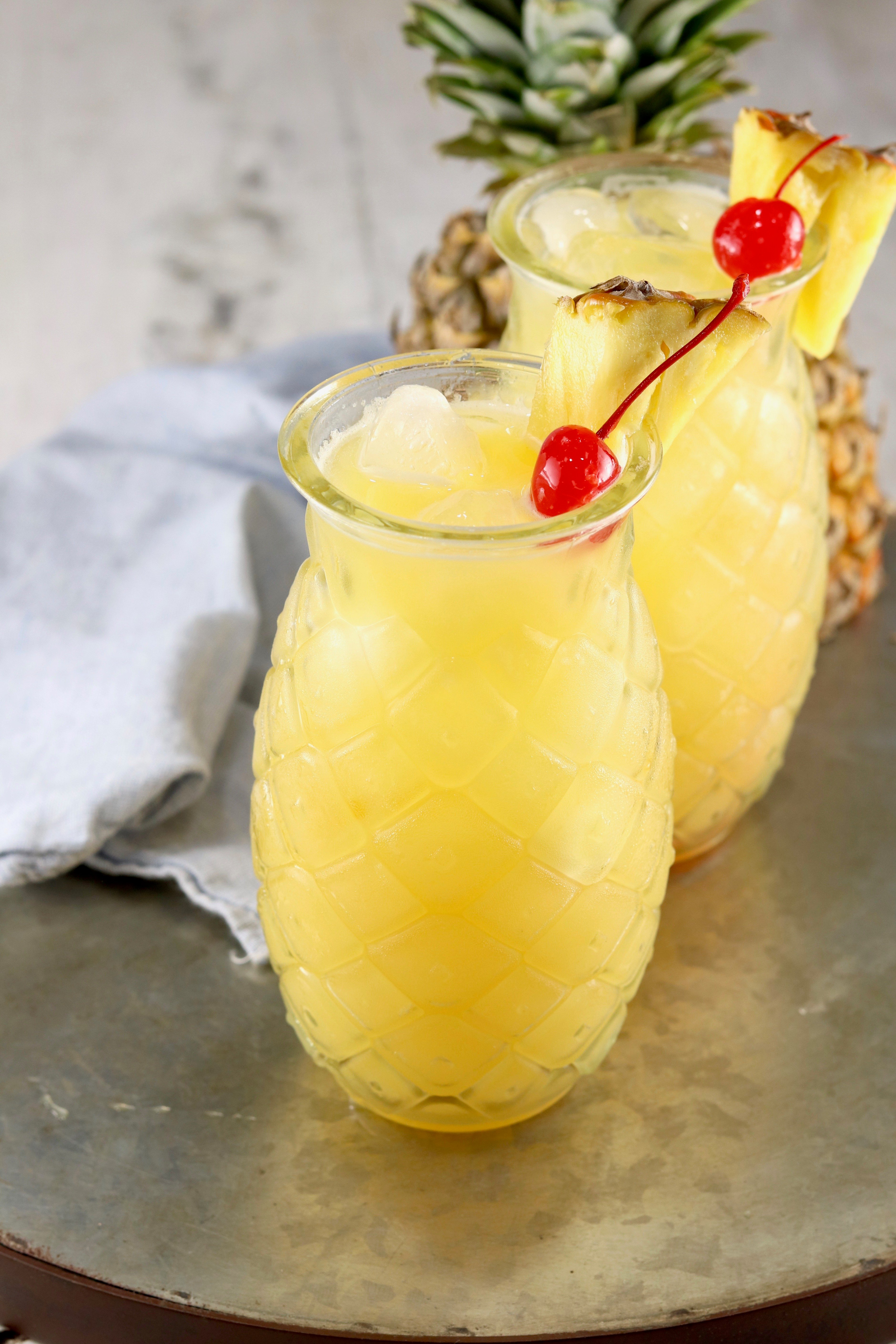 - Fresh Pineapple Wedges and Maraschino Cherries for garnish