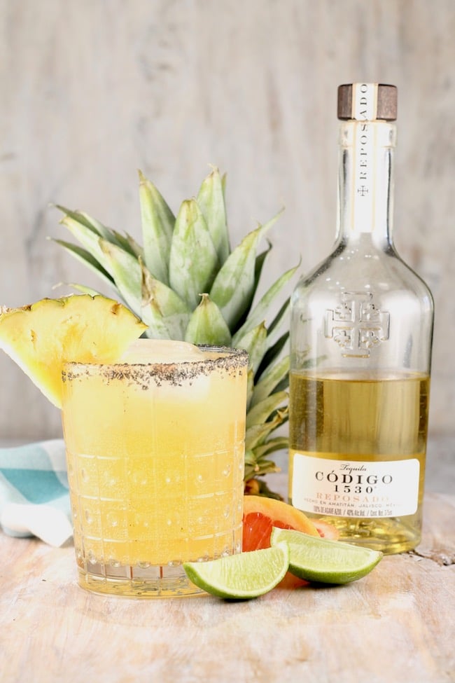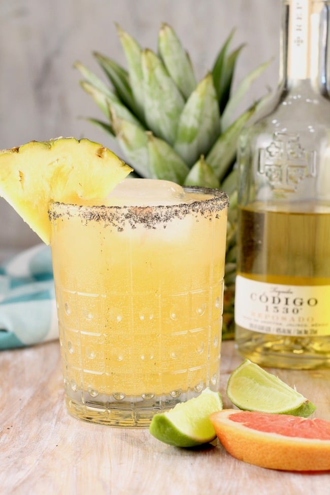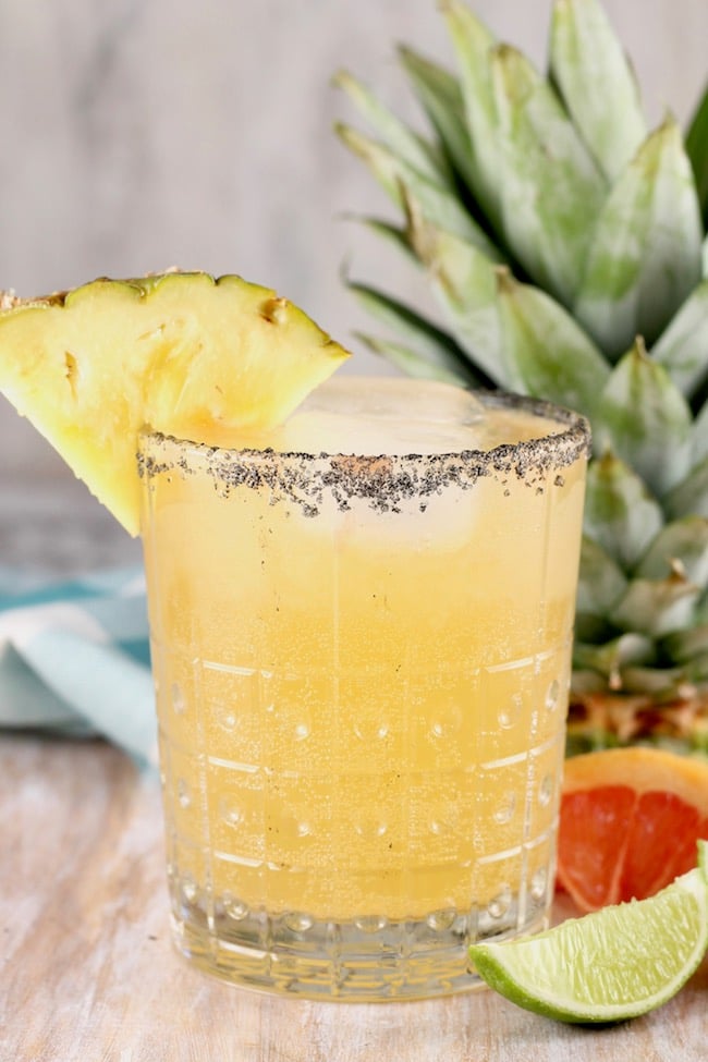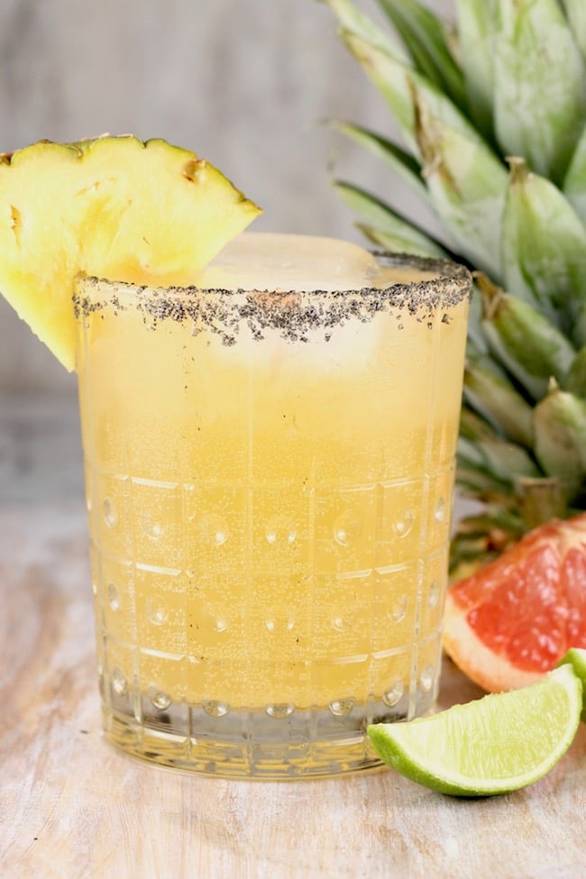 A classic Paloma Cocktail is a combination of grapefruit juice, lime juice, tequila and club soda. I switched out the club soda with Pineapple Soda and it is such a refreshing cocktail.