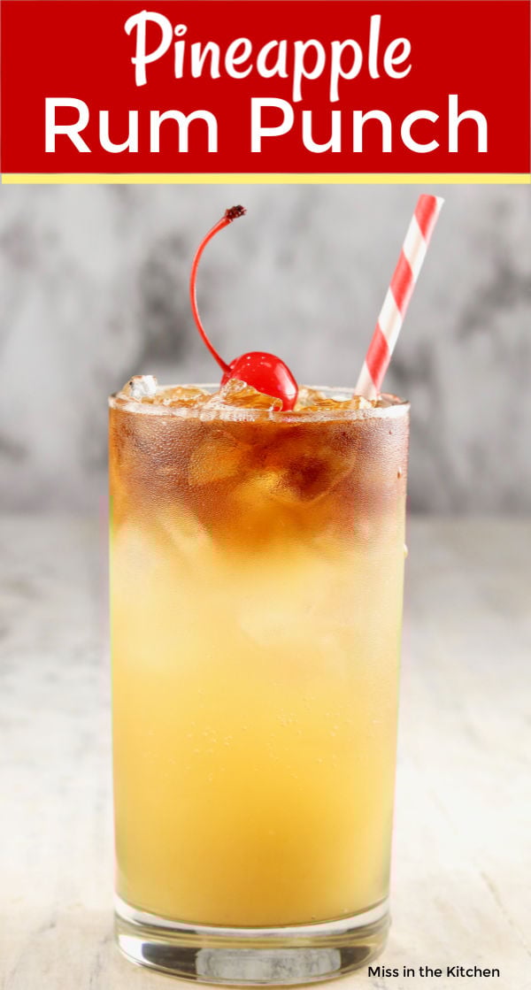 Pineapple Rum Punch is an easy cocktail for any party or celebration. Only 3 ingredients in this simple and delicious rum drink. Easy to make a single serving or a large batch.