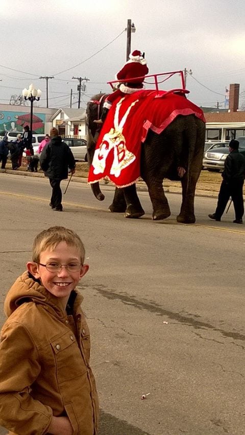 Over the weekend was Emmet’s birthday, it was also the same day as our town’s Christmas parade. Our town is home to a big circus and so Santa showed up riding an elephant. Emmet loved it. We always try to see the elephants when we drive by on our way into town. Pretty cool.