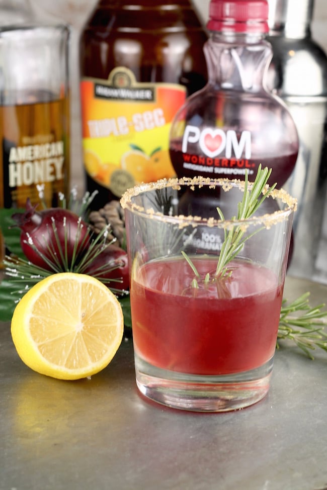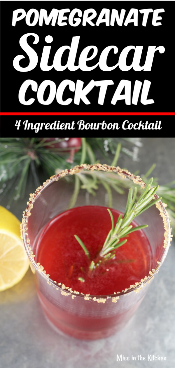 Pomegranate Sidecar Cocktails are super festive and can be made in a flash. Just a few simple ingredients in this delicious flavor combination of pomegranate juice, lemon juice, orange liqueur and bourbon.