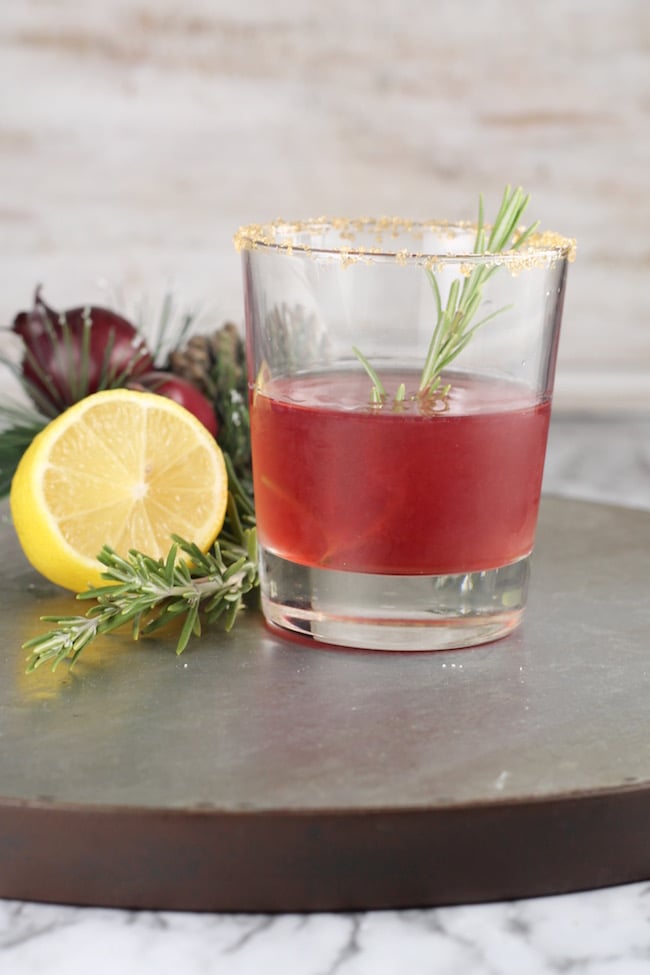 - Garnish with lemon slices and fresh rosemary or rub the rim of the glass with lemon and roll in sugar and lemon zest and a twist of lemon peel.