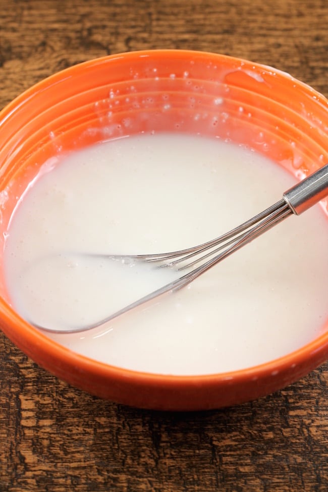 - Mix powdered sugar and milk together until smooth.