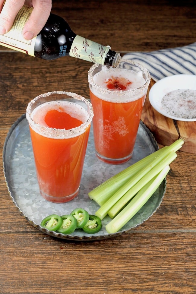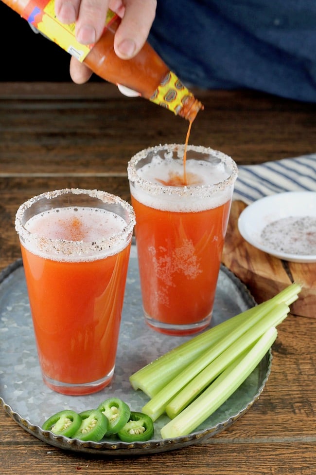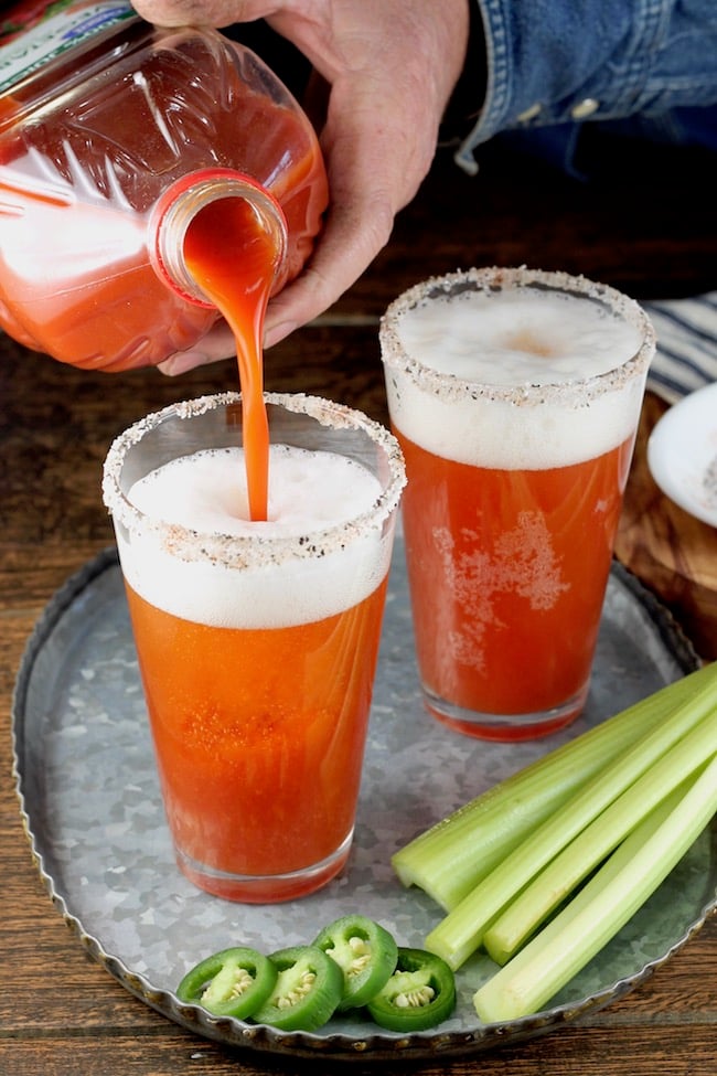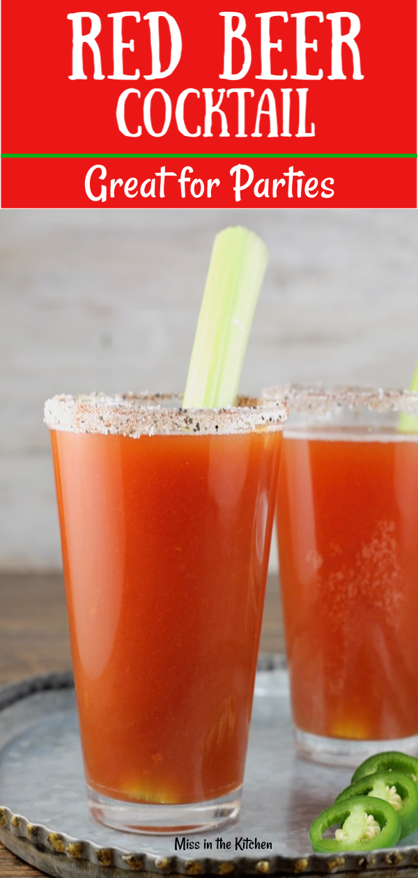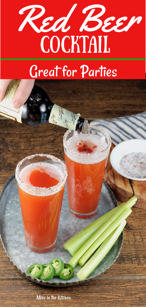 You can use either tomato juice or V8 Juice for red beer. You can make it as spicy as you like with hot sauce or skip the hot sauce, easy to customize to your liking.