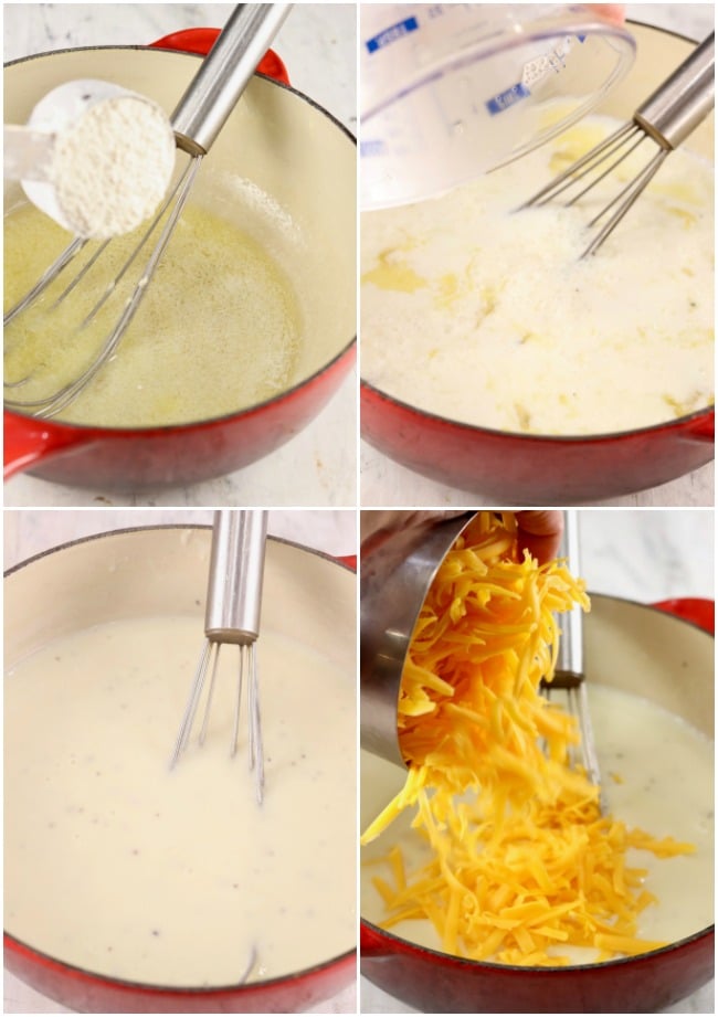 - Melt butter in a saucepan and whisk in flour, dry mustard, salt and pepper.