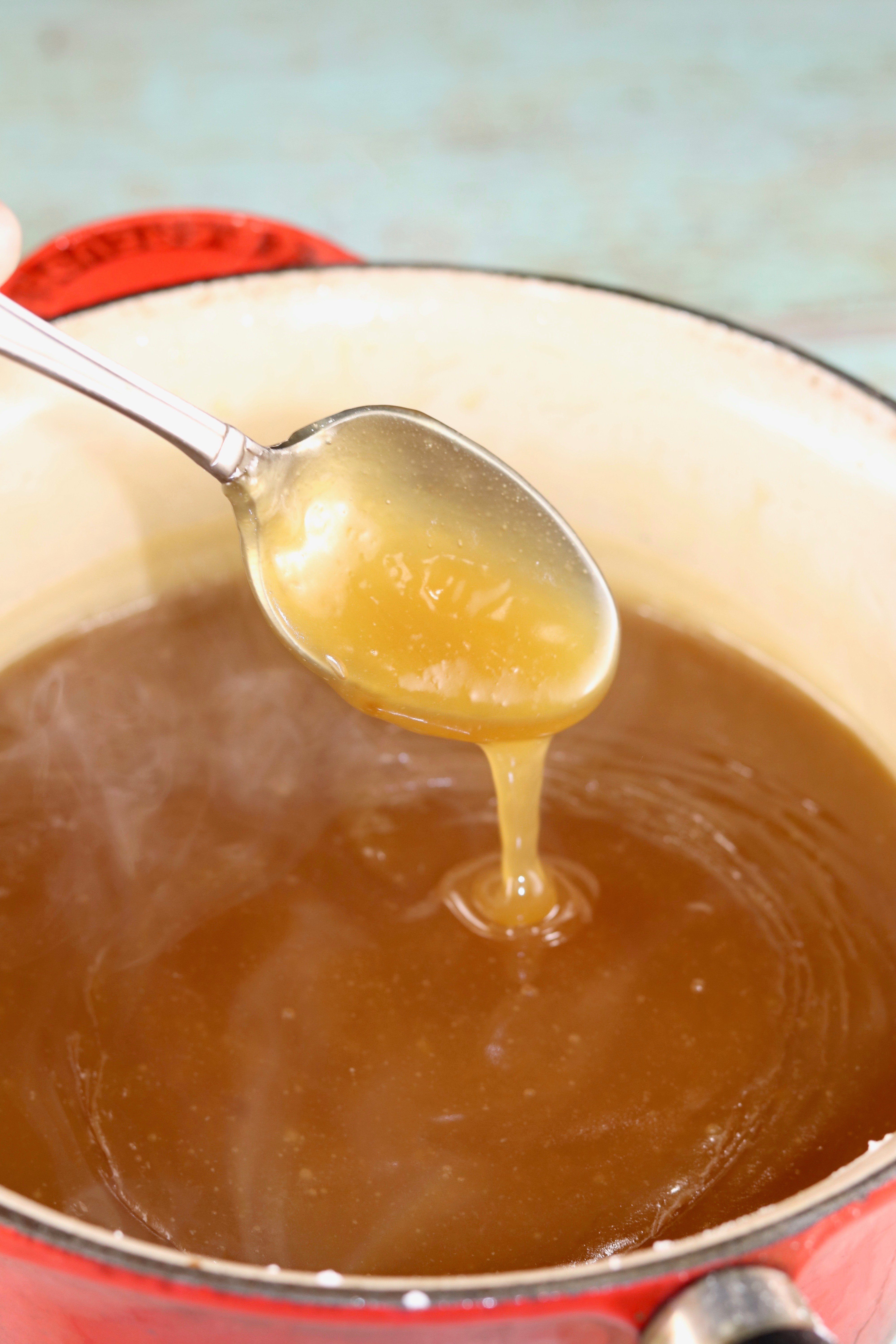 - Bring sauce to a boil and then lower to simmer, whisking continually. Keep warm while you fry the chicken.