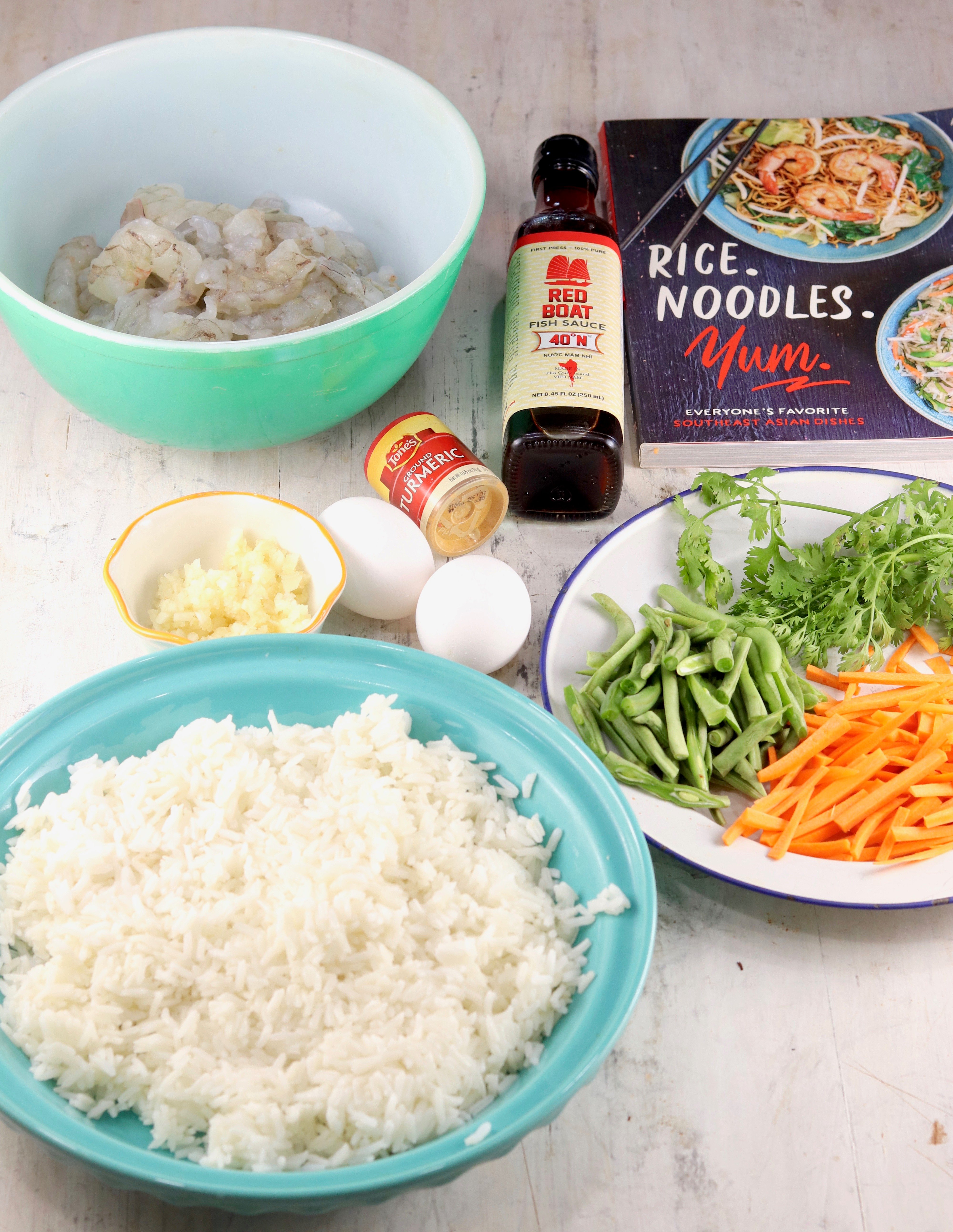 Shrimp Fried Rice or Com Chien Tom is flavored with fish sauce and loaded with carrots, green beans and garlic shrimp. A quick and easy dinner that the entire family will agree on. Skip the take out and try this incredibly delicious version at home!