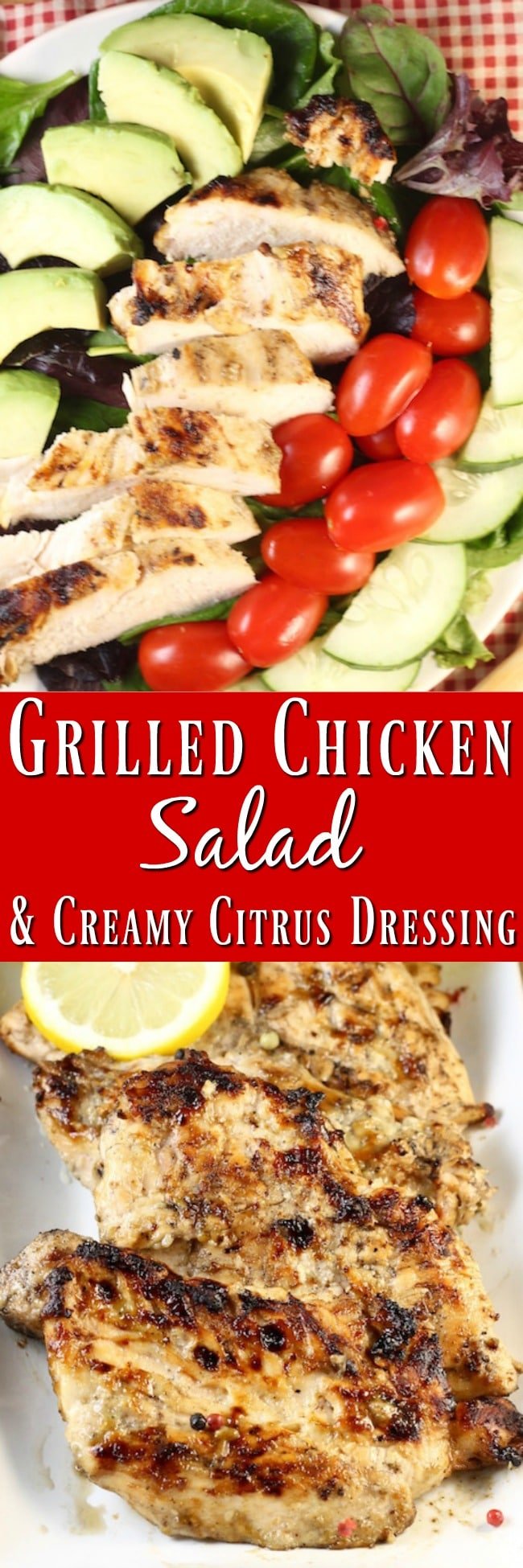 Simple Grilled Chicken Salad with Creamy Citrus Dressing is a healthy and delicious dinner idea for any night of the week. Prep this easy dinner ahead of time and you can serve dinner in no time at all.