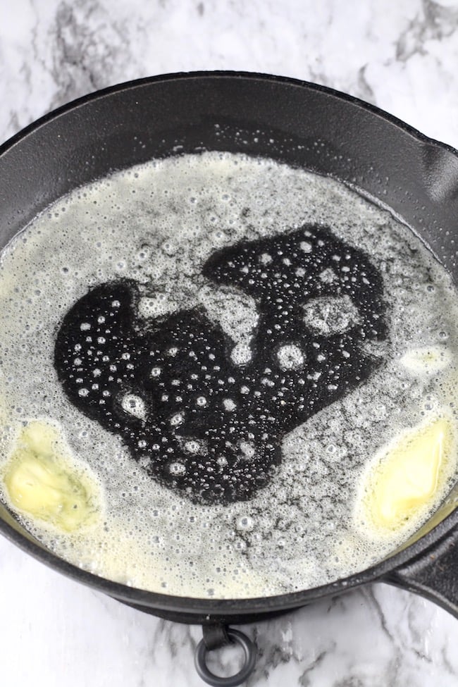 - Place a cast iron skillet in the oven as it preheats.
