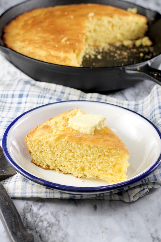 Skillet Cornbread is a simple scratch recipe that anyone can make. Buttery and slightly sweet with a crunchy crust, this skillet cornbread will quickly become your favorite too!