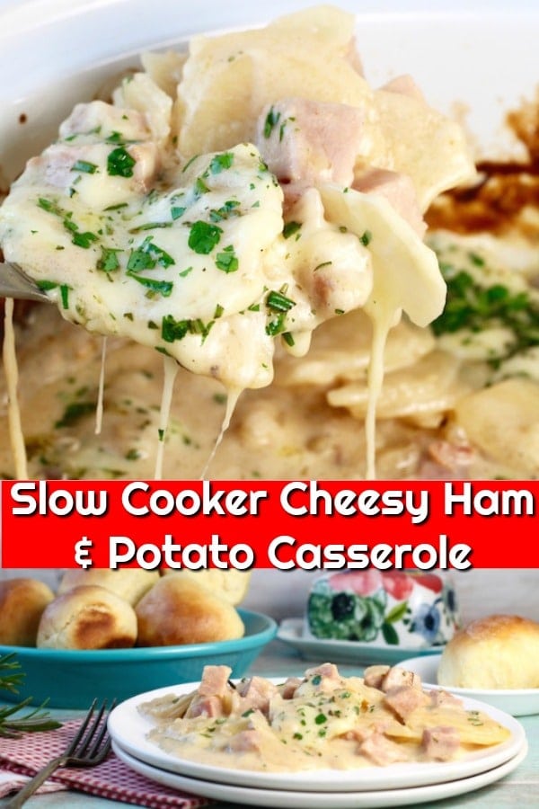 Slow Cooker Cheesy Ham and Potato Casserole is a comforting and delicious dinner perfect for busy weeknights. A great dinner to make with leftover ham and it’s always a family pleasing meal.