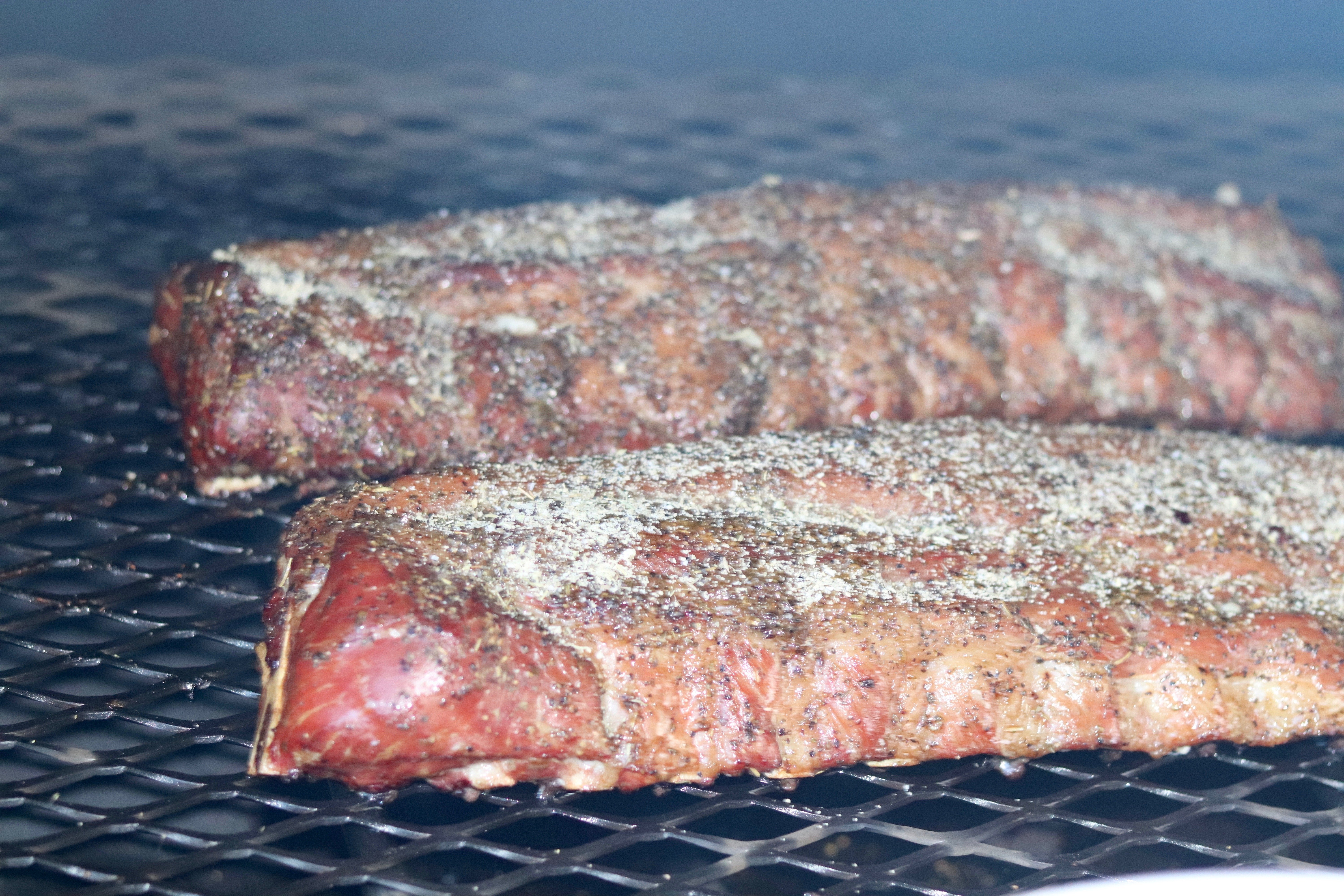 - Place ribs meaty side up and cook for 2 hours or until 190°.
