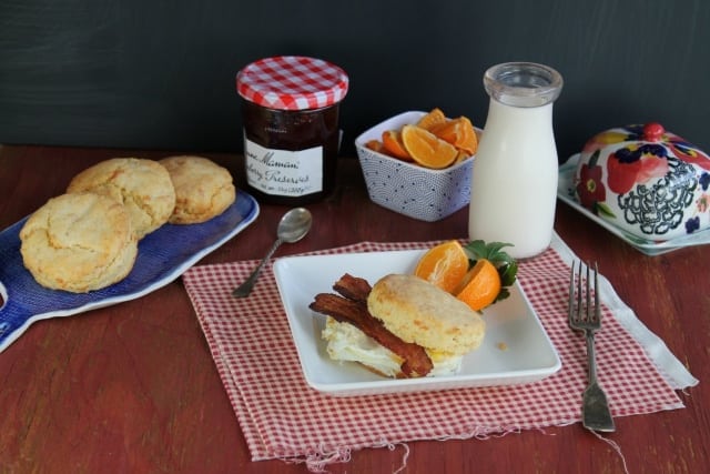 For breakfast I made Smoked Cheddar & Cornmeal Biscuits and filled them with eggs and bacon. They came in starving and breakfast was gone in the blink of an eye.