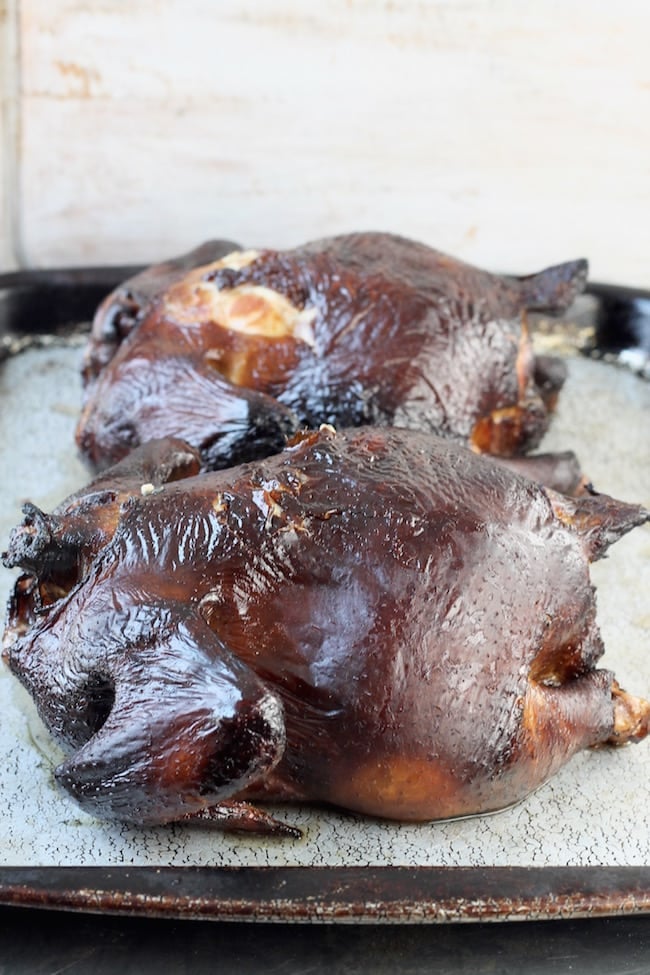 Of course if you are not into smoking chickens, you could always pick up a rotisserie chicken from the deli and make it. Our local barbecue places will usually sell whole smoked chickens and one place will even let you bring your own chicken, ribs or brisket for them to smoke.