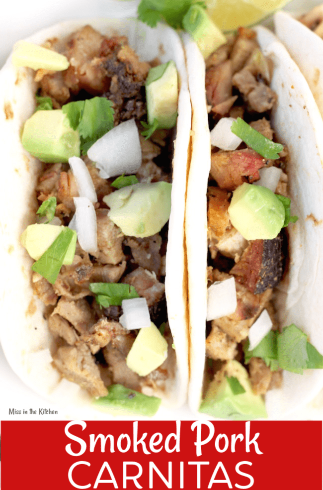 Pork tacos are always a favorite at our house. I’ve made them from my Coca-Cola Braised Pork Loin a few times but these Smoked Carnitas make the best tacos ever!