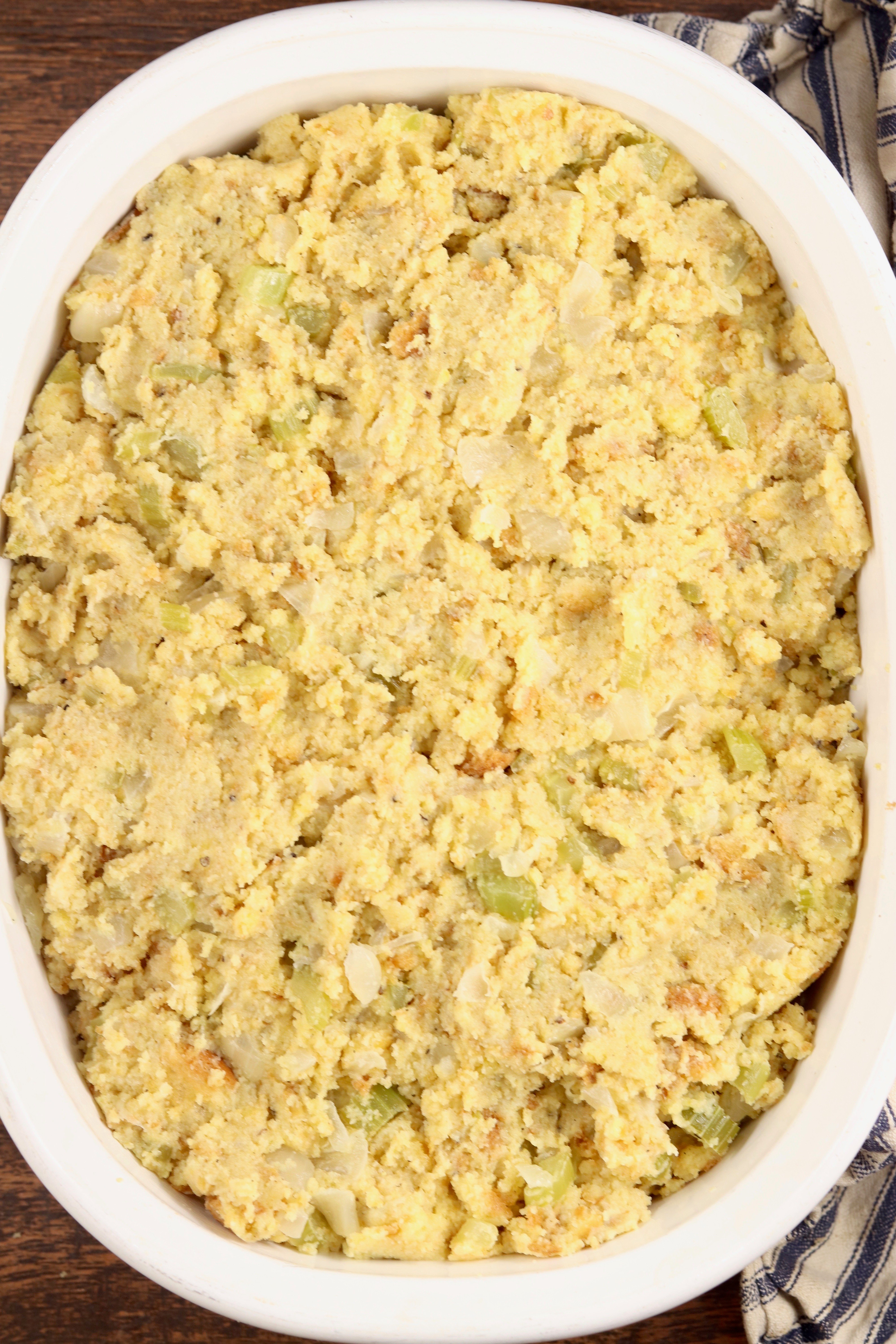 - Time Saver: Make the cornbread a day in advance, cover with plastic wrap or aluminum foil after it cools.