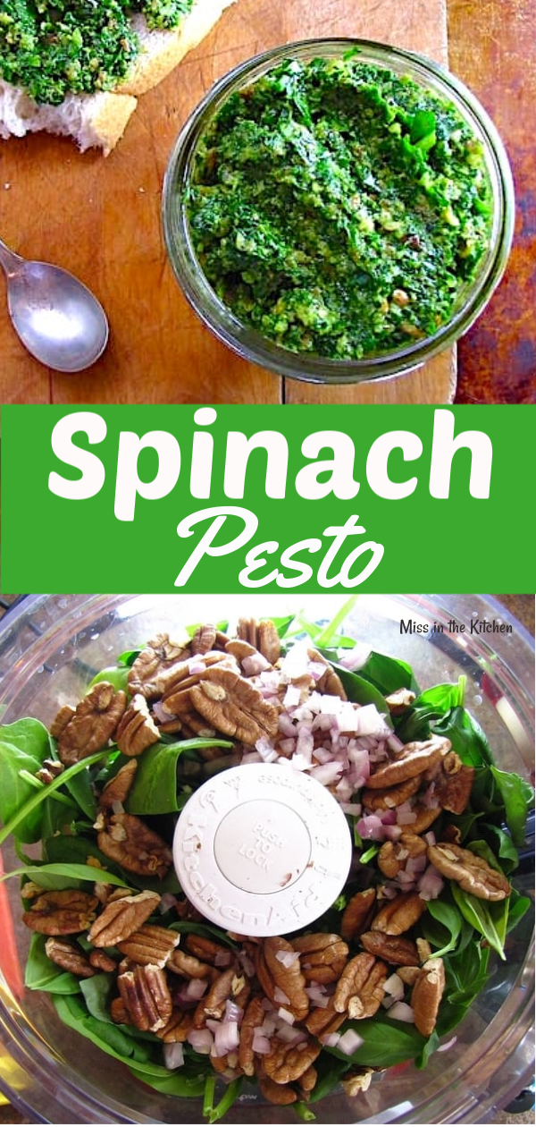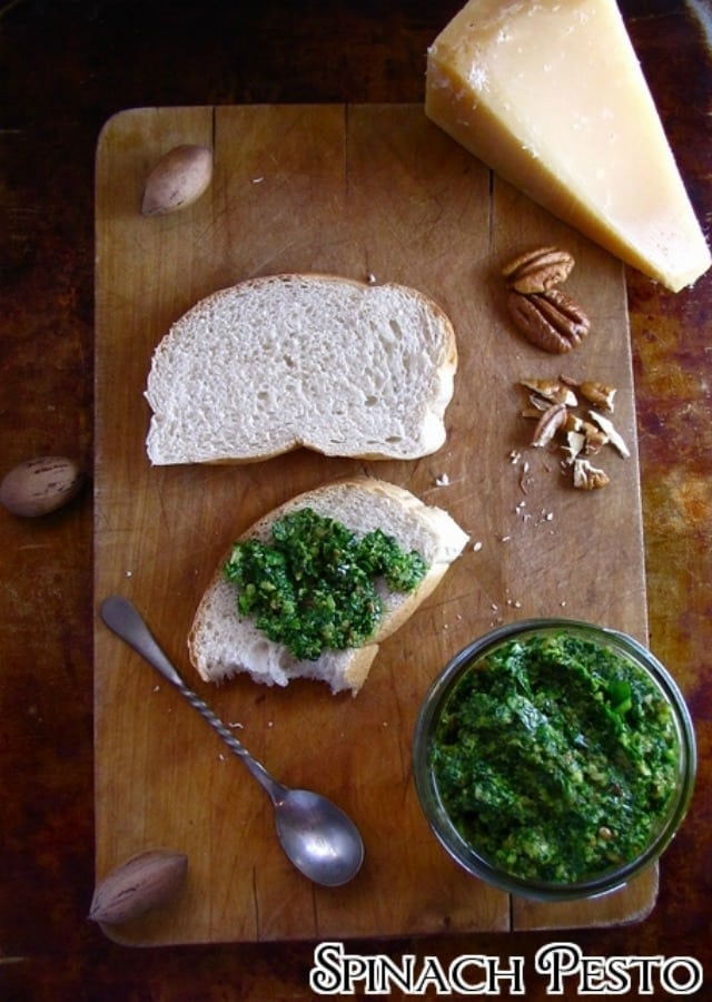 Spinach Pesto is super simple to make and a milder version of my favorite basil pesto. Perfect to brighten up winter and early spring recipes.