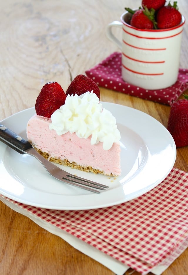 This Frozen Strawberry Cheesecake Recipe is a delicious summer dessert that everyone will love. So easy to make and no heating up the kitchen!