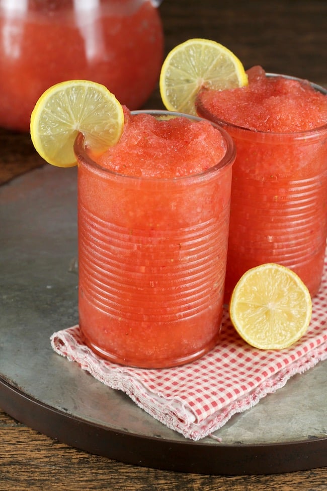 With our family, it’s always relaxed and fun. These Strawberry Lemonade Moscato Slushies were the best thing I’ve made in a long time.