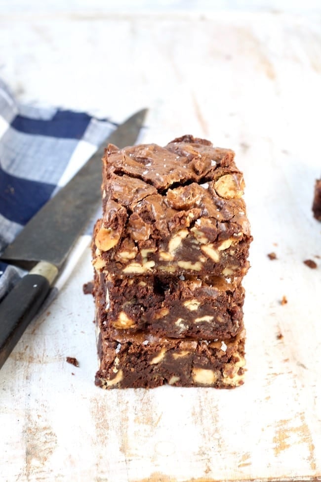 - Coarsely chop walnuts and add along with caramel chips and mix into brownie batter.