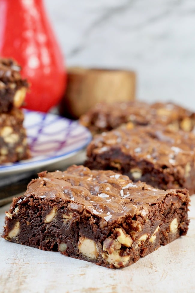 Walnut Brownies are a simple one-bowl recipe easy enough for any day of the week. Rich, fudge brownies filled with toasted walnuts and caramel chips for a decadent and delicious dessert.