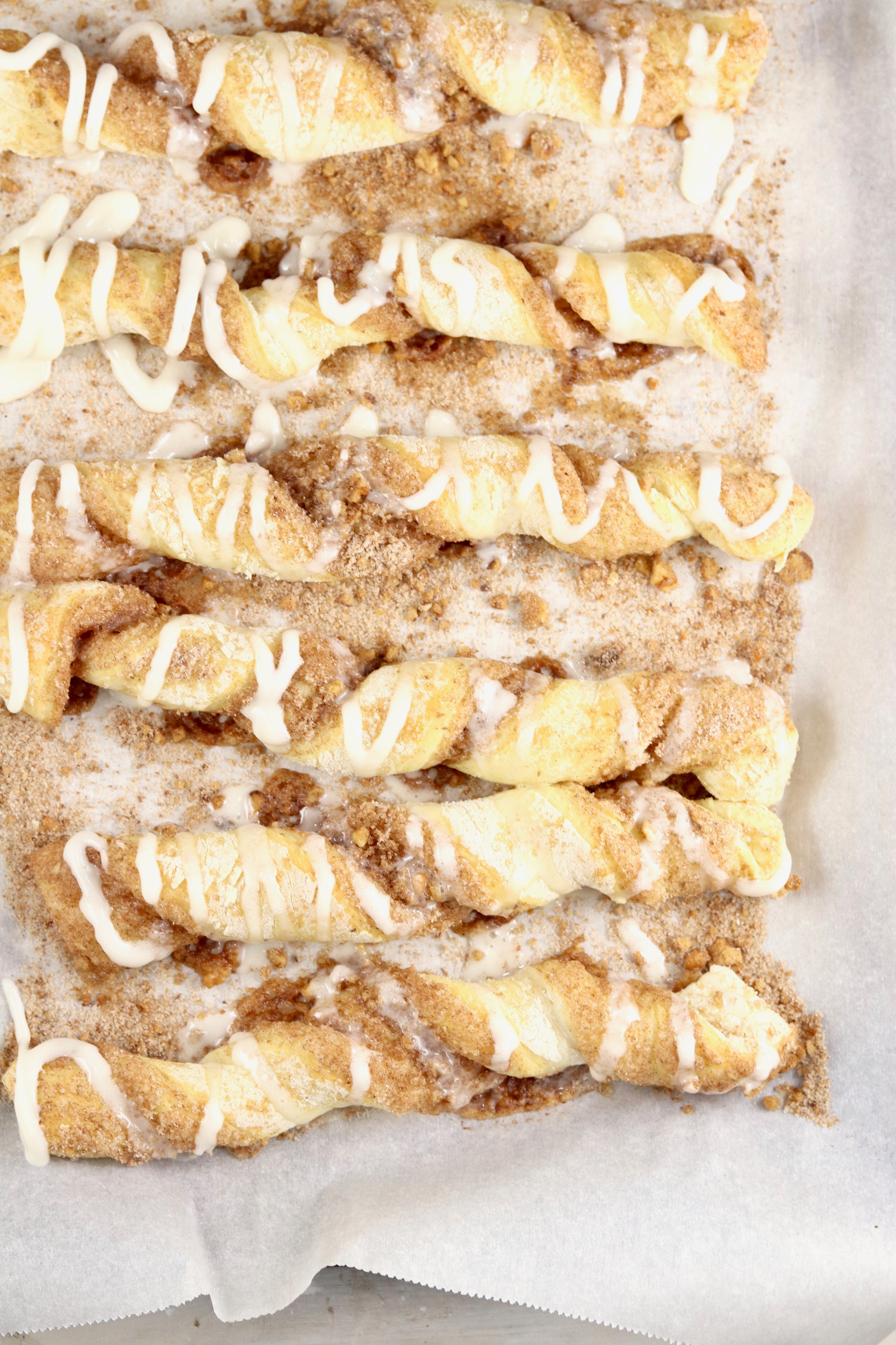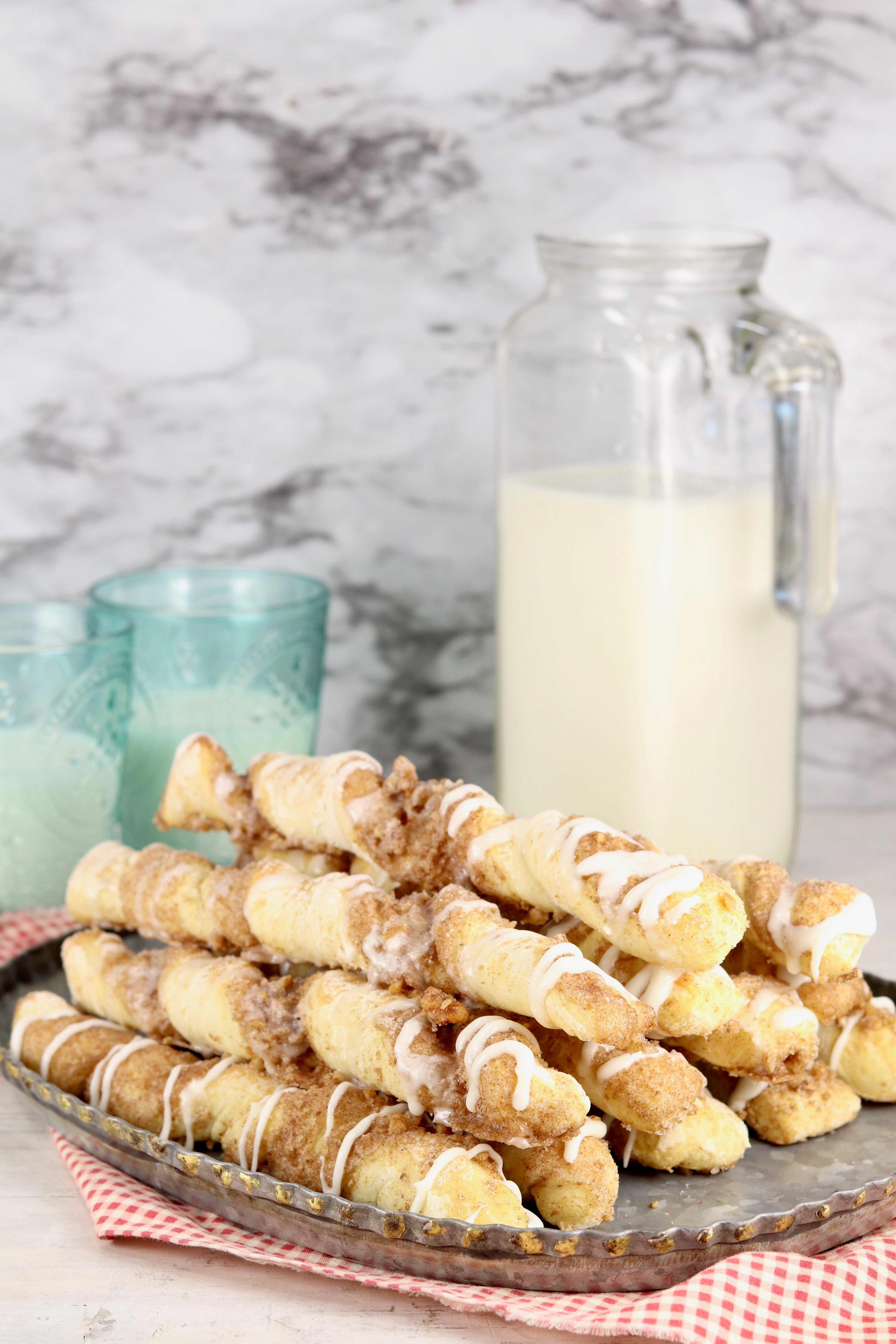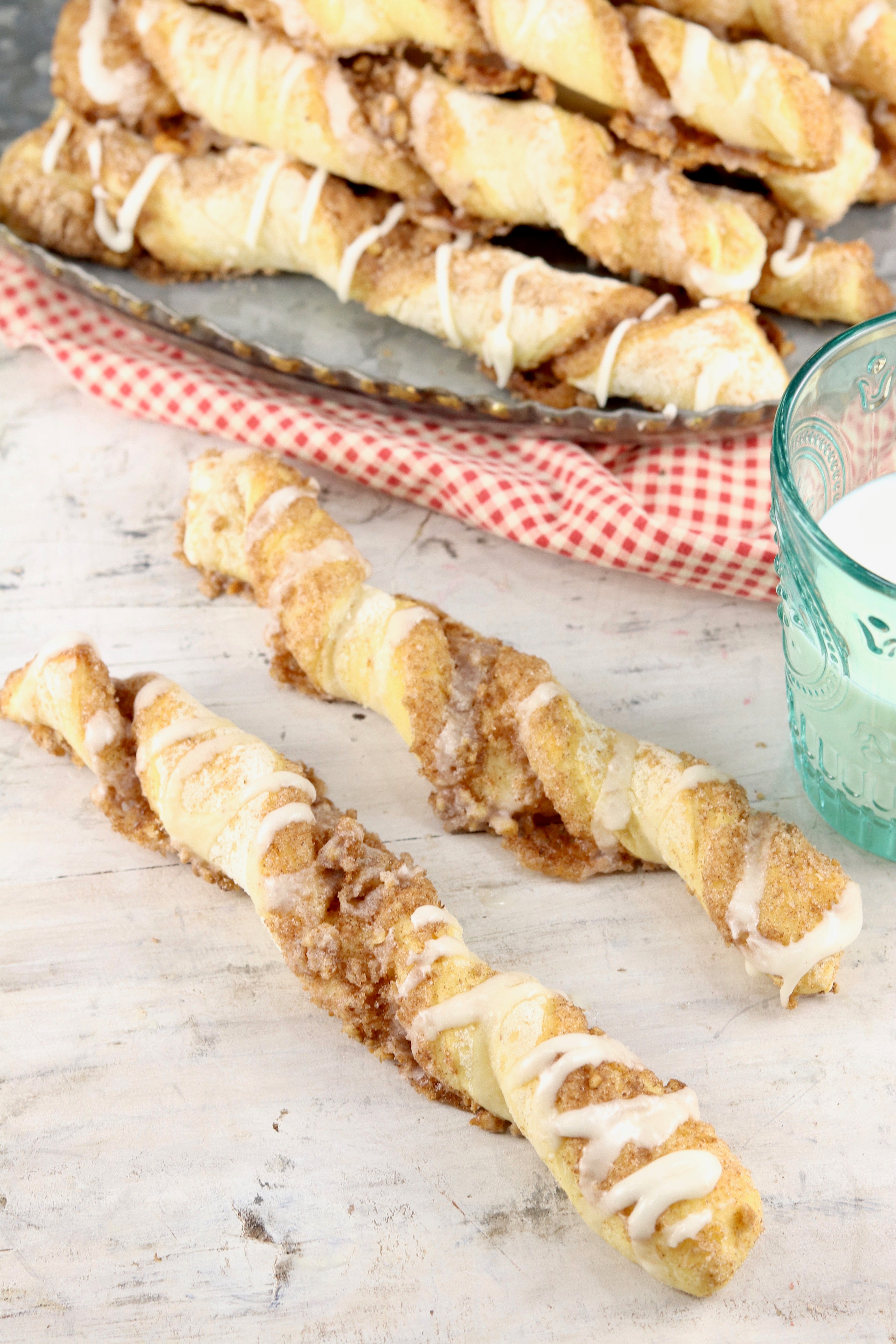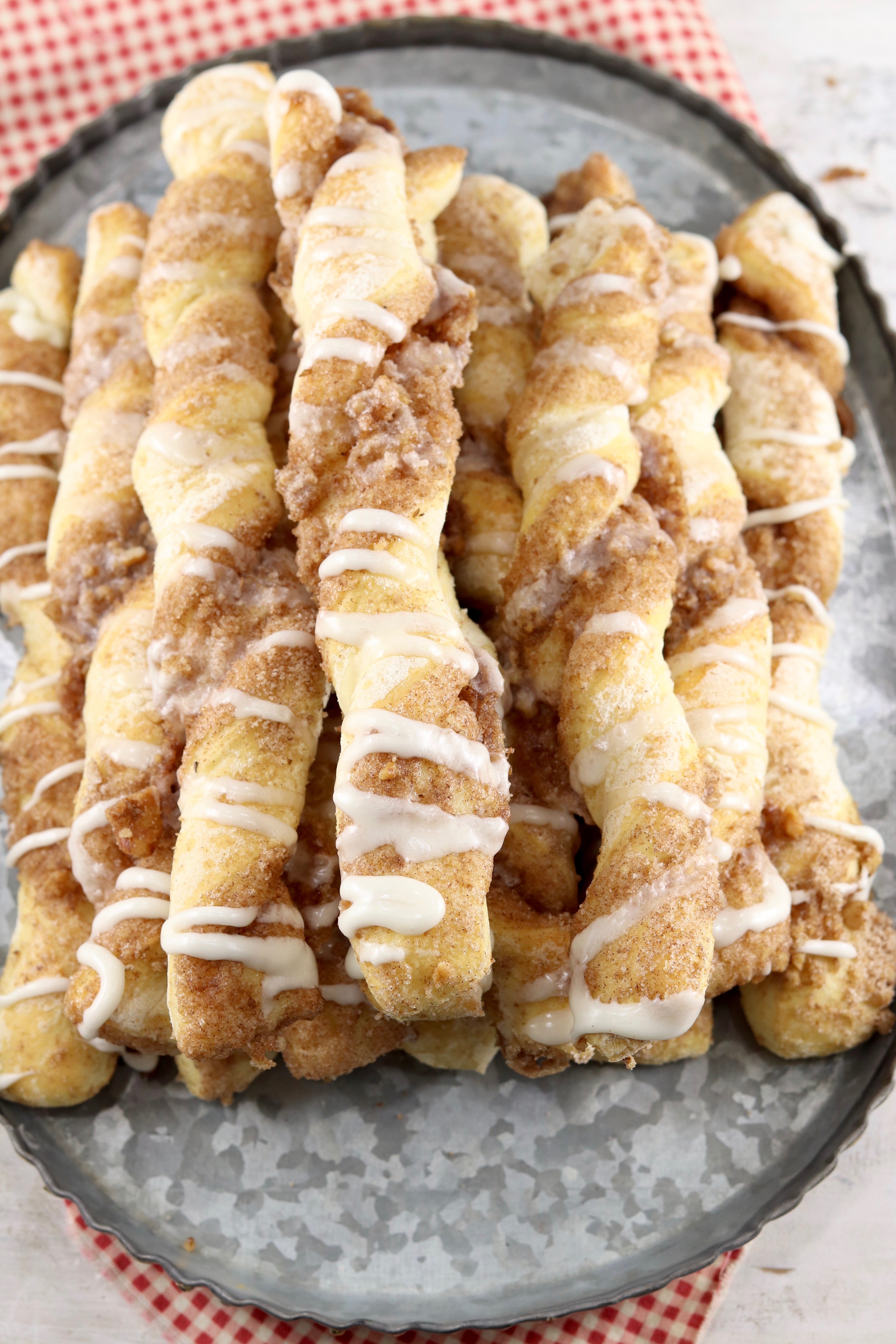 This makes a large batch so there are plenty to share or great for big family gatherings. Cinnamon twists are a little easier to eat than a cinnamon roll. You don’t need a plate and a fork, just grab and enjoy.