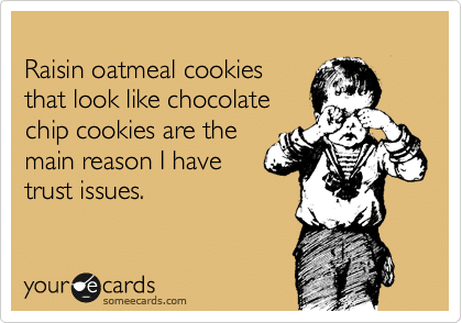 I love raisins but I can’t help but laugh at this SomeeCard. I never eat Oatmeal Raisin Cookies without thinking about this!